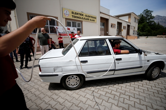 Kısıtlı imkanlarla yaklaşık iki yıldır çalışmayı sürdüren öğrenciler, hurda aracın motor bölümünü sökerek, tamamını kendilerinin yaptığı elektrikle çalışan bir motor taktı. Seyyar kabloyla şebekeden elektrik çekerek otomobili çalıştırmayı başaran öğrenciler, okulun bahçesinde test sürüşleri gerçekleştirdi.