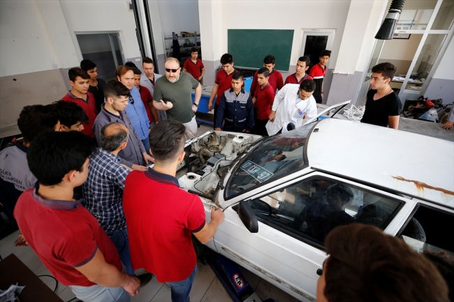 Motor bölümü öğretmeni Eyüp Karagül de trafikten men edilmiş, motoru hurdaya ayrılan bir aracın üzerindeki her çalışmayı öğrencilerle birlikte yaptıklarını söyledi.