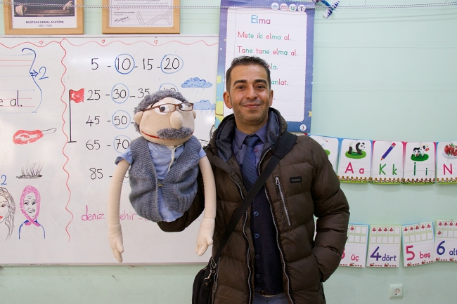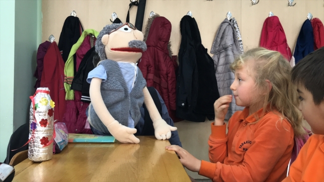 Öğrenciler de "Bakkal Amca" kuklası ve müzikle dersleri daha güzel ve çabuk öğrendiklerini dile getirdi.