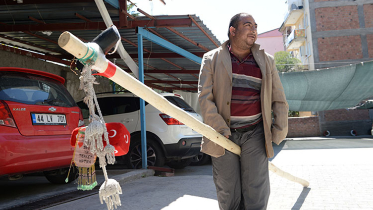 Yeşilyurt ilçesine bağlı Tecde Mahallesi'nde yaşayan, kentte herkesin "Mercedes Kadir" olarak bildiği Fatih Kaydı, araba zannederek çeşitli objelerle süslediği, Mercedes logosunun bulunduğu, yaklaşık 3 metre uzunluğunda, 10 kilogram ağırlığındaki kavak ağacından sopasıyla mahalle mahalle dolaşıyordu.