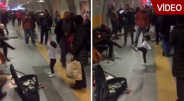 İstanbul'da bir metro istasyonunda sokak müzisyenlerini gören küçük bir kız çocuğu müzisyenlerin yanından bir an olsun ayrılmak istemedi.