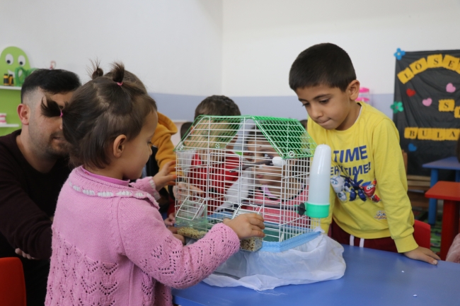 "Bazı sınıflarımızda su kaplumbağası, kanarya ve farklı hayvanlar bulunuyor. Bahçede içerisinde tavuk, horoz ve ördeklerinde olduğu bir barınak yapmışlar. Ördekler için de küçük bir havuz yapmışlar. Biz bunu yaparak hayvan sevgisini ve çocukların hayvanlara olan ilgisini artırmak istiyoruz. Hayvan sevgisini geliştirmek adına mutlaka her okulumuzun bir hayvanı olsun diyoruz."