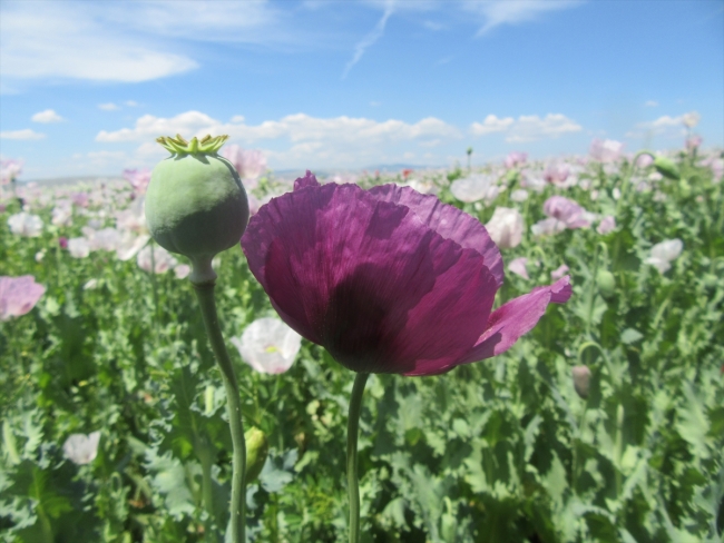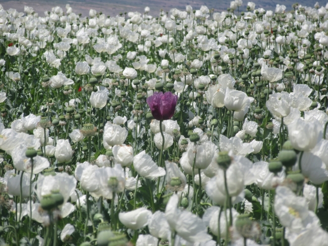 Toprak Mahsulleri Ofisinin (TMO) denetimi altında yetiştirilen haşhaş, ilkbaharda beyaz ve mor çiçek açıyor.