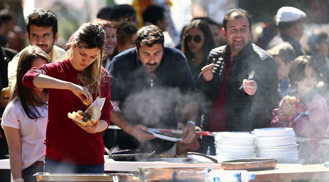 Şölende 5 ton ızgara ve tavada pişirilmiş hamsi, vatandaşlara ekmek arasında ücretsiz dağıtıldı.