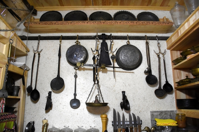 Akgül, odalar, banyo ve mutfakta kullandığı eşyaların Selçuklu, Osmanlı ve Cumhuriyet dönemlerine ait olduğunu anlattı.