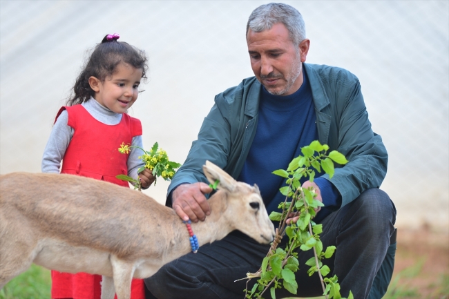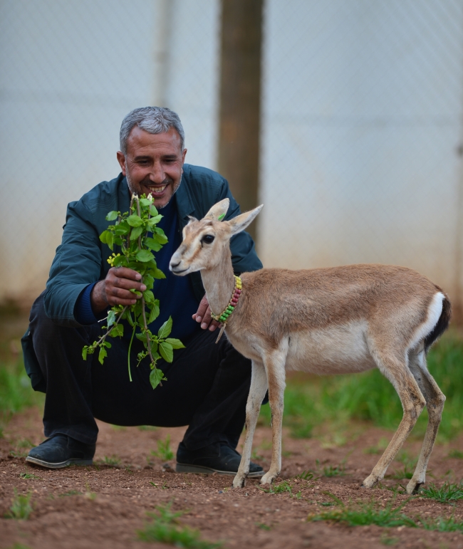 Şanlıurfa 75. Yıl Ceylan Üretme İstasyonundan 17 yıl önce aldığı 2 çift ceylanı biberonla süt vererek özenle yetiştiren Felhan, üremesini sağladığı hayvanların sayısını 10'a ulaştırdı.