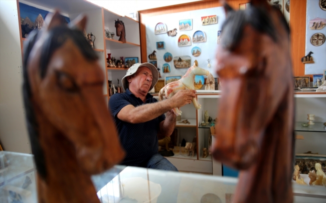Nevşehir'in Uçhisar beldesinde yaklaşık 50 yıldır ağaç ve taş oymacılığı yapan Kültür ve Turizm Bakanlığı sanatçısı Yüksel Eren, Kapadokya'nın tanıtımına katkı amacıyla farklı malzemelerden at heykelleri yapıyor.
