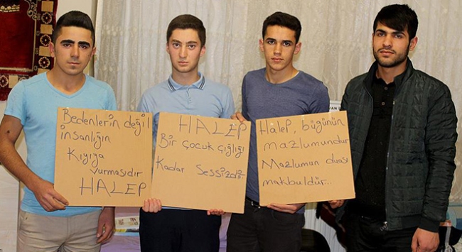 "276 öğrenci arkadaşımızla harçlıklarımızı Halepli kardeşlerimize gönderdik. Elimizden ne geldiyse Halep için yapmaya çalıştık. Allah korusun ülkemizde böyle bir şey gerçekleşirse biliyorum ki onlar da bize yardım edecektir. Aynı dili konuşmayabiliriz ama biz aynı peygamberin ümmetiyiz. Biz sadece yardımlarımızla değil, gönül bağıyla yanlarındayız. Halep'te gerçekleşen bu drama sessiz kalamazdık. Tabii ki gücümüz bazı şeylere yetmiyor ancak gücümüzün yettiği kadar elimizden geleni yaptık."