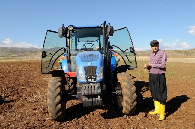 Bingöl Üniversitesi Ziraat Fakültesi Tarla Bitkileri Bölümü Öğretim Üyesi Prof. Dr. Kağan Kökten, dersten çıktıktan sonra üniversitenin Erentepe köyündeki uygulama tarlasında şalvar ve çizmelerini giyip kasket takarak traktörün başına geçiyor.