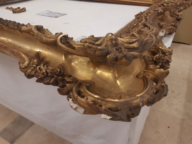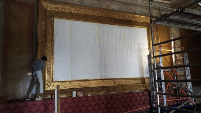 Saraylar ve kasırlardaki her altın varaklı eser, atölyeye getirilemiyor. Bazı eserler, büyük boyutlu olduğu için bulundukları yerlerde müdahale edilmesi gerekiyor. Atölye Sorumlusu Arzu Kural, bu konuyla ilgili olarak, “Takribi 5 ay önce ‘Sürre Alayı’ tablosunun çerçevesine restorasyon yapıldı. 6 metre büyüklüğünde bir çerçeveydi ve hiç yerinden oynatılmamış. Ona iskeleler kurularak yerinde müdahale edildi. Şu anda iki arkadaşımız Dolmabahçe Sarayı’nda 7 metre genişliğinde ve 5 metre yüksekliğindeki ‘Çölde Av’ tablosunun restorasyonunu yapıyor” şeklinde konuşuyor.