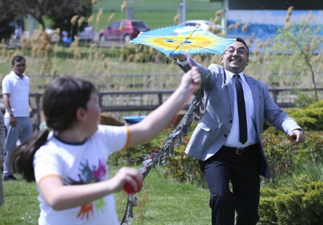 Çocuklar öğretmenlerinin yardımıyla, Gölbaşı Kaymakamı Tülay Baydar Bilgihan ve Gölbaşı Belediye Başkanı Fatih Duruay'la uçurtma uçurdu.