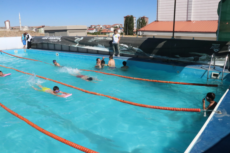 Bakanlığın projesi kapsamında Çekerek, Akdağmadeni, Sorgun ve Şefaatli ilçelerinde kurulan portatif yüzme havuzlarında 700'ü aşkın çocuk yüzme eğitimi alıyor.