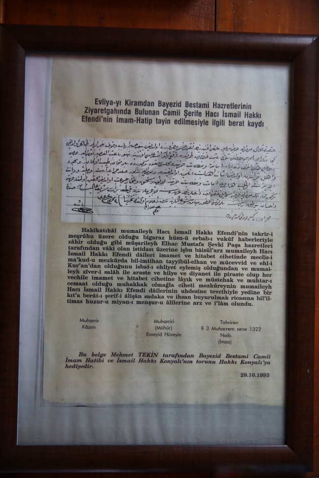 "Bayezid-i Bestami hazretleri iki defa rüyama girerek benim türbedarlığa devam etmemi istedi ve ben de polisliği bırakarak buraya türbedar olmak için geldim. Babam 45 yıl bu görevi yaptı. 1999 yılından bu yana da ben yapıyorum. Benden sonra da çocuklarım aynı görevi yapacak."