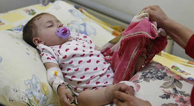 Gaziantep'te 54 kişinin yaşamını yitirdiği kına gecesine yönelik terör saldırısında yaralanan bir yaşındaki Esma bebek, hayatını kaybeden annesinin tülbentiyle uyuyor.