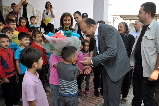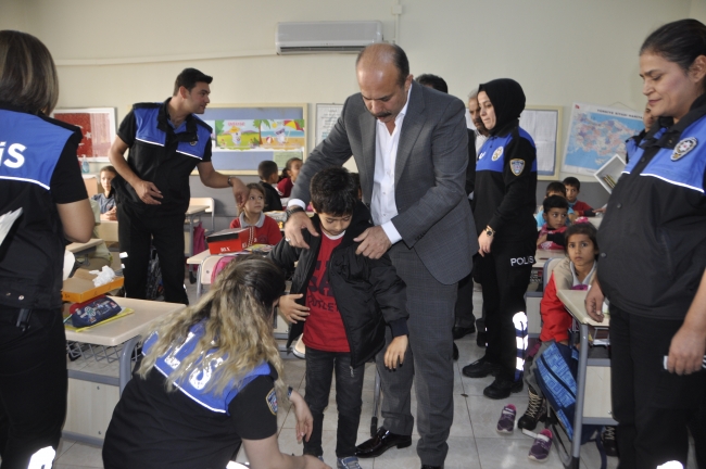 Kışlıkların dağıtılması amacıyla düzenlenen programa katılan Adana Emniyet Müdürü Zafer Aktaş, öğrencilerle yakından ilgilenerek, çocuklara temin edilen mont ve ayakkabılarını giydirdi.