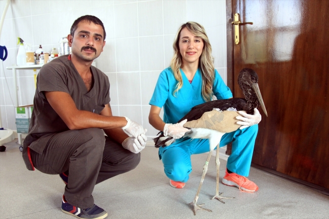 Ondokuz Mayıs Üniversitesi Veteriner Fakültesine götürülen ve burada ameliyata alınan leyleğin kanadına platin takıldı.