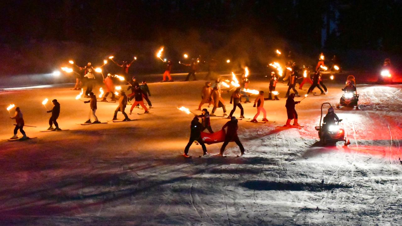Hava sıcaklığının sıfırın altında 15 derece ölçüldüğü kayak merkezinde, kayak eğitmenleri meşaleli kayak gösterisi sundu. Kafkas Halk Oyunları ekibinin gösterisiyle de Sarıkamış Kayak Merkezi sezona "merhaba" dedi.