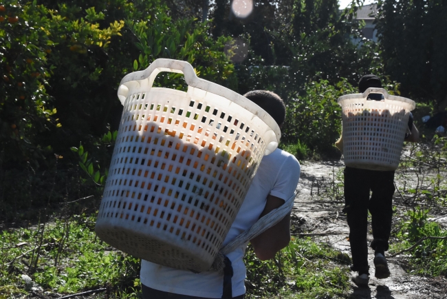 Derge, "Sabah 05.00'te kalkıyoruz, saat 07.00'de işe başlıyoruz. Bahçede kesim yapıyoruz. Bahçemiz güzel olursa, kasamız bol çıkıyor. Ekmek paramızı böyle kazanıyoruz. 7- 8 ay mandalina kesmek için bu ayları bekliyoruz. Çoluk çocuğumuzla geliyoruz, çalışıyoruz" ifadelerini kullandı.