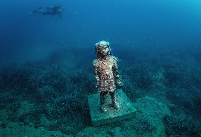 [Fotoğraf: AA]Anadolu medeniyetinin zenginliklerini anlatan 117 heykelin sergilendiği müze, Side'nin yaklaşık 1,5 mil açığında, 11, 18 ve 24 metre derinliklerde bulunuyor.