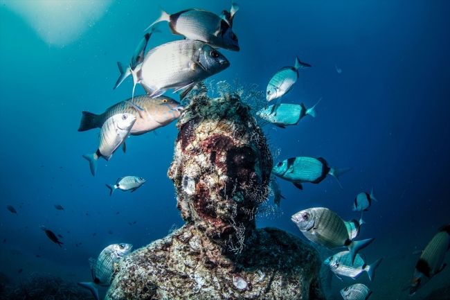 Sertifikalı dalgıçlar genelde Poseidon'u beğeniyor. 3,5 metre yüksekliğinde 5 ton ağırlığında en büyük heykelimiz o. Ama acemi dalıcılar yalnızca üstten Mevlana grubunu görebiliyor.