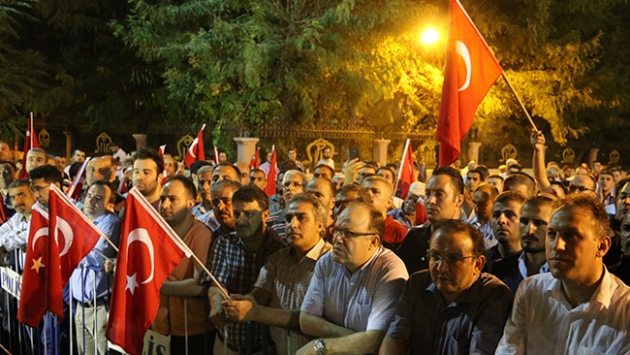 Ellerindeki Türk bayraklarıyla Valilik önünde bir araya gelen vatandaşlar, yatsı namazının ardından Gaziantep'teki terör saldırısında hayatını kaybedenler için gıyabi cenaze namazı kıldı.