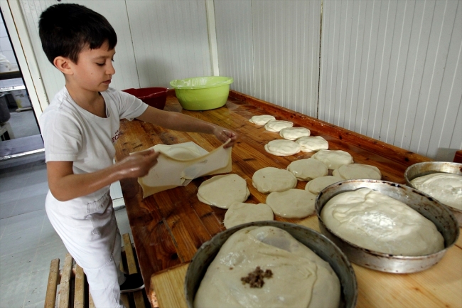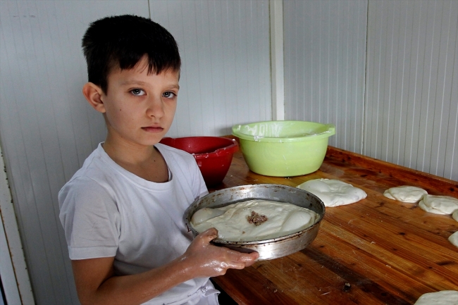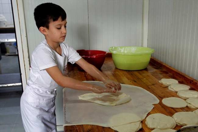 Küçük yaşına rağmen kolları sıvayıp börek ustalığına soyundu...
