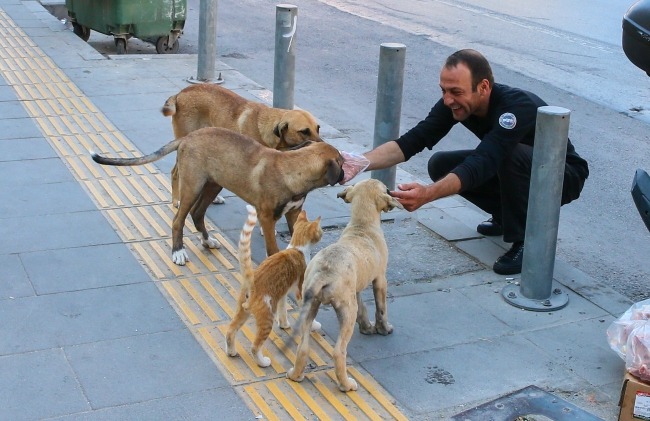 İşe giderken yolunun üzerinde bulunan kedi ve köpekleri besleyen Mogol, "can dostları"nın bakım ve beslenmelerini mesai sonrasında da sürdürüyor.