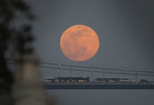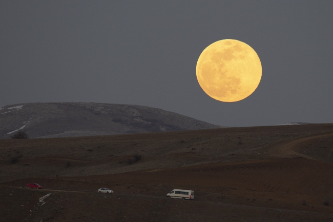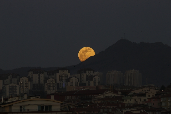 Doğa olayı tutkunlarının heyecanla beklediği Süper Ay, güneşin batması ile ortaya çıktı.