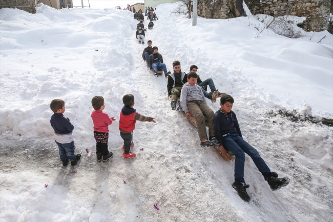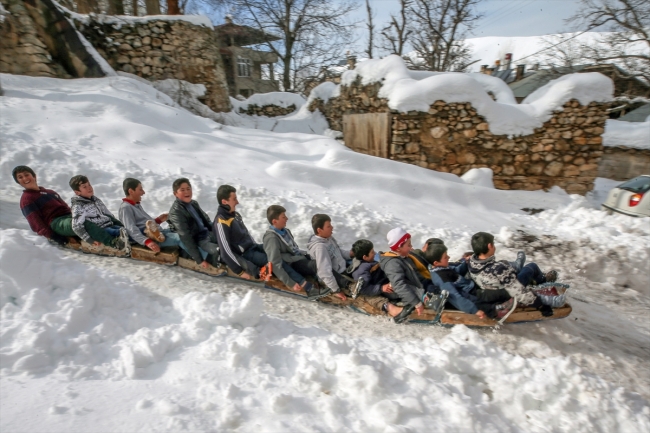 Abdulkadir Hazar, havanın güzel olduğu her gün kızakla kaydıklarını anlatarak, "Kızaklarımızı babalarımızın ve ağabeylerimizin yardımıyla tahta ve boru kullanarak yapıyoruz. Tatilimizi güzel değerlendiriyoruz" dedi.