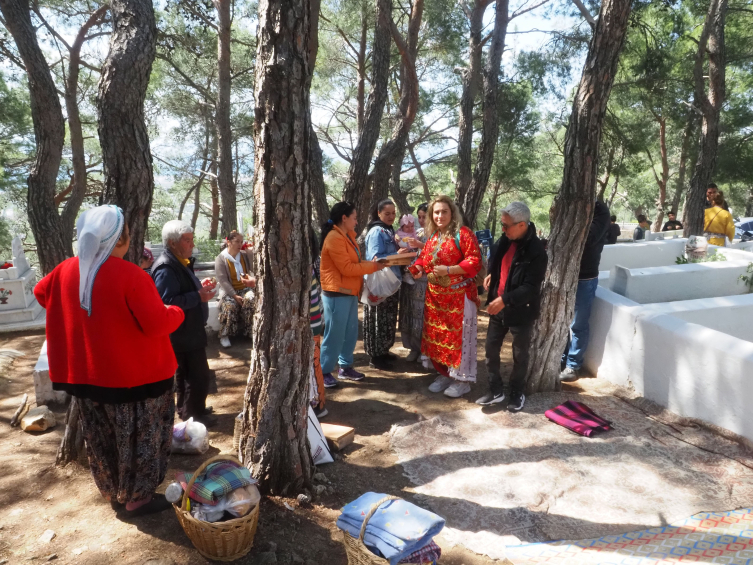 Bir gün önce kurban kesen ve en güzel giysileriyle kabristana gelen Türkmenler, burada dua etti. Yanlarında getirdikleri yemekleri yiyen Tahtacı Türkmenleri, odun ateşinde pişirdikleri kahvelerle çerez ve şekerleri birbirlerine ikram etti.