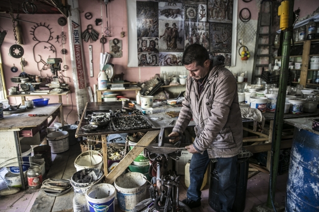 Tamircilerden bilye, zincir, çivi, yay, bilye, amortisör, vida, balata, buji ve çatal gibi hurda veya atık durumdaki malzemeleri toplayan Mervan Altınorak, atölyesinde gece gündüz çalışarak parçaları bir araya getirdi.
