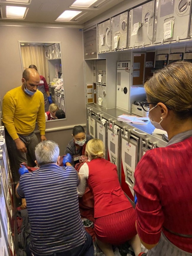 "Faslı anne adayının durumunu görünce, eşiyle İngilizce iletişim kurdum. Baba adayı bana eşinin hamile olduğunu aktardı. Önce hostesler, ardından kaptan gelip durumu anlamaya çalıştı. Doğum olayının tıbben başladığını görünce doğumu yaptırabileceğimi söyledim ve THY hosteslerinden, uçağın kuyruk bölümünde bir alan açmalarını istedim. Sağ olsunlar her söylediğimi adeta bir sağlık ekibi ciddiyetiyle uyguladılar. Ben de öğrencilik yıllarımdan unutulmaya yüz tutan bilgilerimi sergilemeye çalıştım"