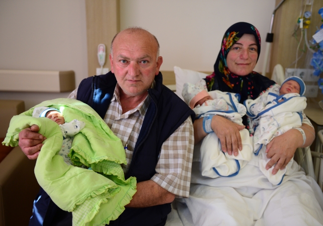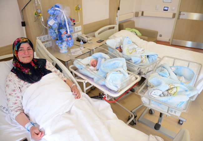 Meliha Er ile 55 yaşındaki eşi Ali Er, burada 19 Mart'ta dünyaya gelen üçüz bebekleriyle anne-baba olmanın mutluluğunu yaşadı.
