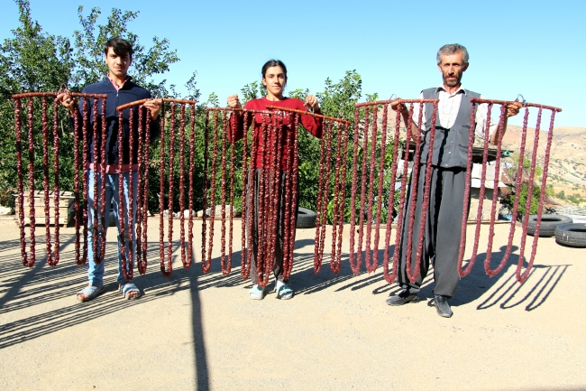 Elazığ'ın yöresel lezzetleri arasında yer alan "orcik" (cevizli sucuk), köylülerin günler süren emeğiyle geleneksel yöntemlerle hazırlanıyor.