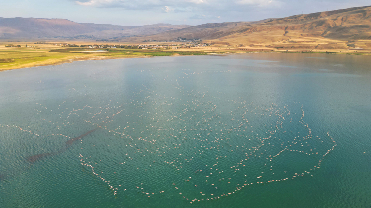 Havaların ısınmasıyla konaklamak için Van Gölü'ne akın eden binlerce flamingo, iri gövdeleri, zarif boyunları ve uzun bacaklarıyla ziyaretçilerin dikkatini çekiyor.