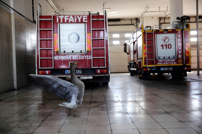 Göç sırasında yolunu kaybederek Nevşehir Belediyesi İtfaiye Müdürlüğü önüne inen 2 yaban kazı, itfaiyenin maskotu oldu.