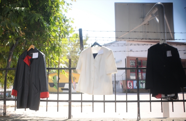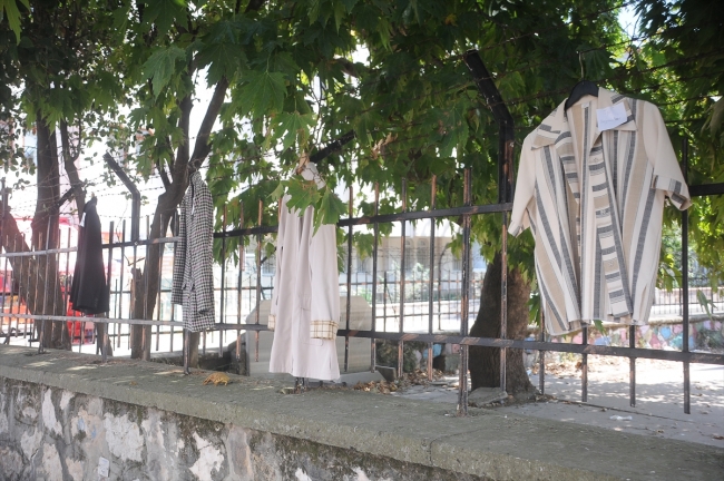 Yalova Bahçelievler Mahallesi Yalova Anadolu Lisesi'nin önünden geçenler bahçe korkuluklarına asılı çok sayıda giysi gördü.