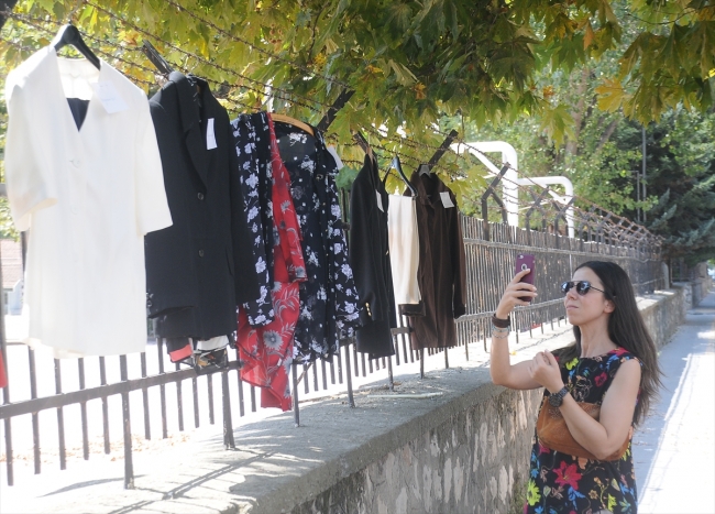Yıkanmış, ütülenmiş ve üzerinde "İyi bayramlar" notu bulunan ikinci el giysiler görenleri şaşırttı.
