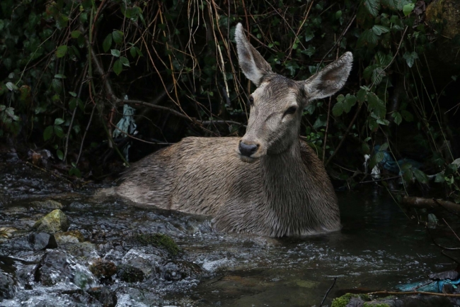 Köy halkından Mücahit Eraslan, "Köpeklerin çok bağırmasını duydum. O bölgeye gittiğimde geyik gördüm. Kurtarmaya çalıştık ancak yaralı olmasına rağmen dere boyu kaçtı. Biz de ekiplere haber verdik." diye konuştu.