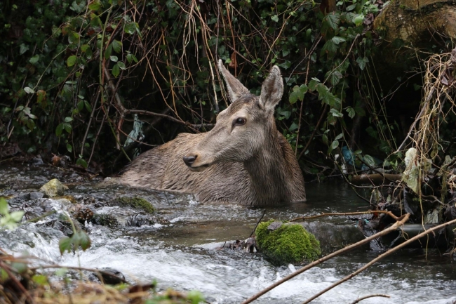 Mudurnu'ya bağlı Bekdemirler köyü Değirmen Bayırı mevkisinde dere yatağında yaralı bir kızıl geyik gören köylüler, Doğa Koruma ve Milli Parklar Bolu Şube Müdürlüğü ile jandarma ekiplerine bilgi verdi.