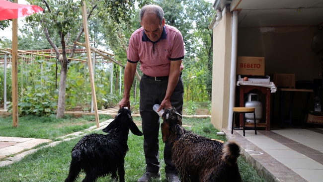 Evinin bahçesindeki kulübelerinde yatan “Fındık” ve “Kara Kız” adlı yavru keçilerine biberonla sütlerini içirdikten sonra sabah ilk iş olarak 5 kilometrelik yürüyüş yapan Bilici, kendisinden ayrılmayan yavru keçileriyle her yere gidip geliyor.