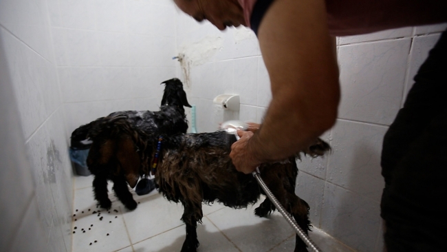 Bilici, yavru keçilerin banyo serüvenlerini ise “Yıkadığım zaman onlar da seviniyor, ferahlıyorlar. Haftada bir yıkandığı için devamlı istekliler. Kaşındığı zaman hissediyorum ki duş alması lazım. Alıyorum banyoya şampuanla güzelce yıkıyorum, saç kurutma makinesiyle ile kuruluyorum. Ondan sonra çıkarıyorum dışarı” sözleriyle anlattı.