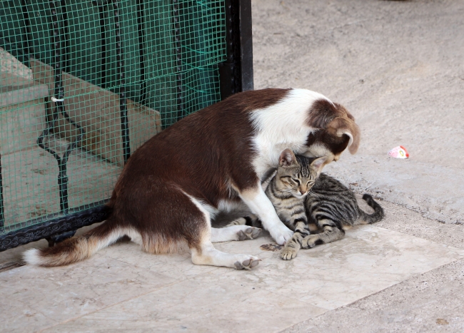 Bizim kedi ve köpeğimiz bu deyimin tam tersini yaşıyor. Sürekli oynayıp, birlikte zaman geçiriyorlar. Birisi kaybolsa, birbirlerini arıyorlar. Kedi miyavlasa, köpek neredeyse koşarak yanına geliyor. Kediyi kucağıma alıyorum, köpek tedirgin oluyor. Yavrusu gördüğü kediye zarar vereceğimden korkuyor."