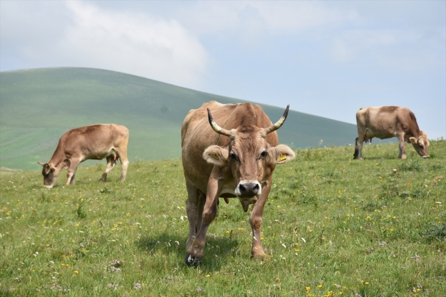 İlkbahar mevsiminden itibaren hayvanlarını yaklaşık 2 bin 500-3 bin rakımlı ve zengin floralı yaylalarda besleyen vatandaşlar, ineklerden doğal ve katkısız süt elde ediyor.