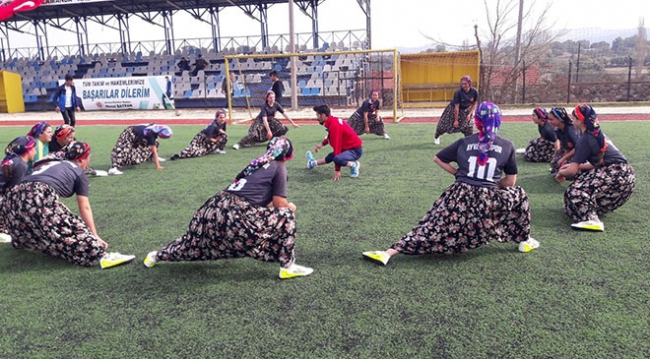 Çanakkale’nin Ayvacık ilçesinde, üniversiteli kızlar ile Yörük kızları futbol maçı yaptı.