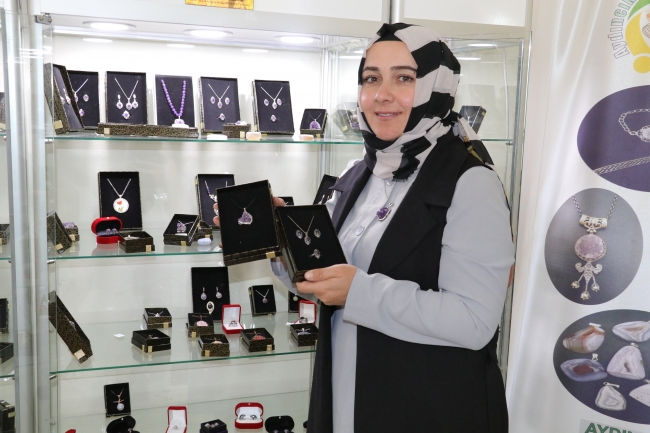 İlçede çıkartılan ametist, akik, jasper ve kalsedon gibi yarı değerli taşları işleyip takılara dönüştürdüklerini ifade eden Türker, zamanla bu ürünleri çevre il ve ilçelere sattıklarını belirtti.