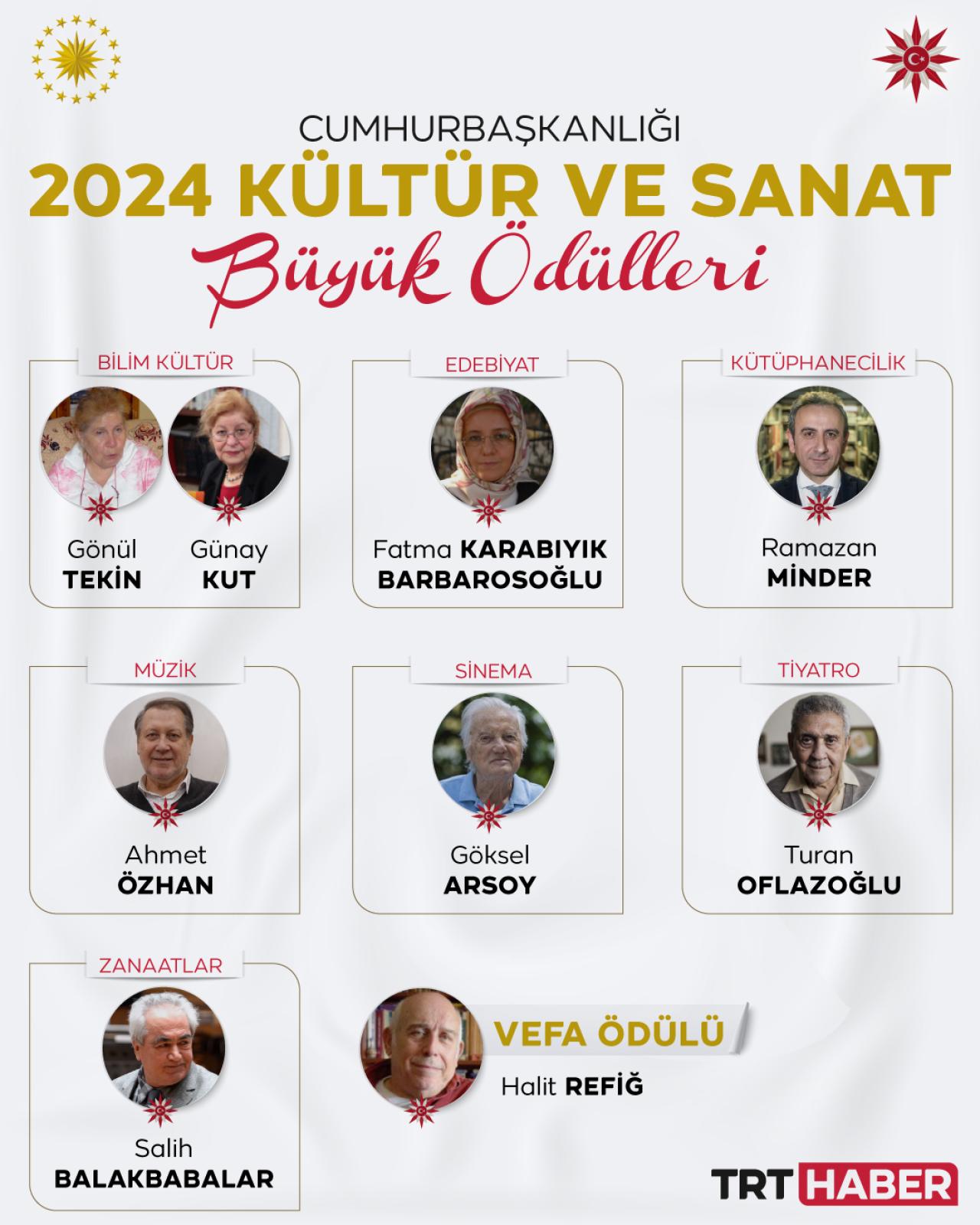 Cumhurbaşkanı Erdoğan, "2024 Cumhurbaşkanlığı Kültür ve Sanat Büyük Ödülü" sahiplerini açıkladı.