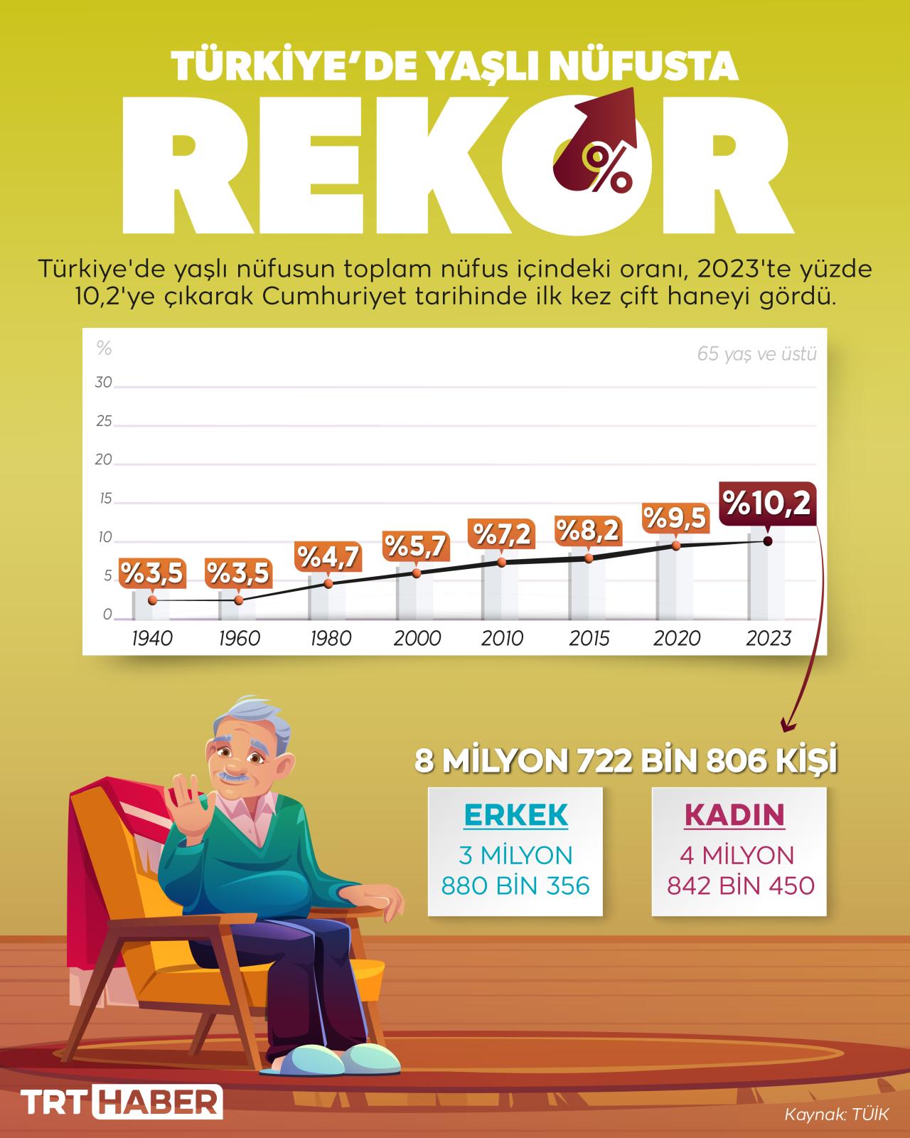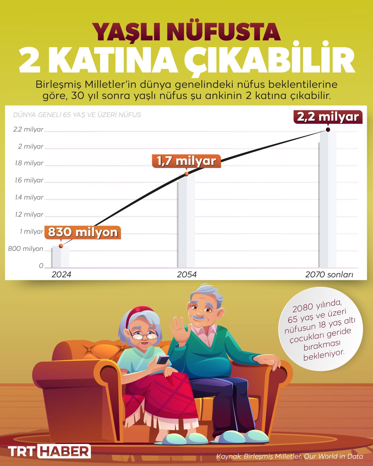 Birleşmiş Milletler’in dünya genelindeki nüfus beklentilerine göre, 30 yıl sonra 65 yaş ve üzeri nüfus şu ankinin 2 katına çıkabilir. 2080 yılına gelindiğinde ise genç nüfusu geçebilir. Peki, Türkiye’de durum ne?