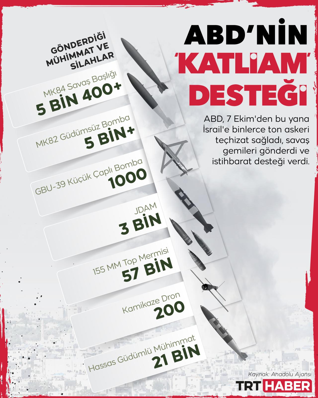 Silah, mühimmat, istihbarat ve stratejik danışmanlık... Gazze'deki katliamın baş destekçilerinden ABD, İsrail'e 'sınırsız' desteğini sürdürüyor.