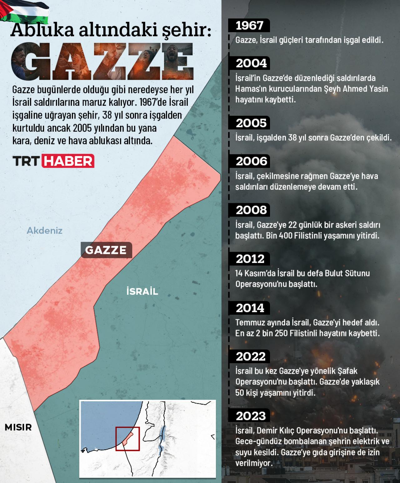 1967 yılında İsrail işgaline uğrayan Gazze şehri, 38 yıl sonra işgalden kurtuldu. Ancak 2005 yılından bu yana kara, deniz ve hava ablukası altında. İşgalci İsrail'in kuşatması ve saldırgan politikasının gölgesinde yaşayan Filistinliler, zor koşullara rağmen hayata tutunmaya çalışıyor.